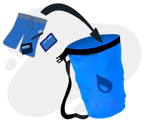Empaque ropa de repuesto, almuerzo y objetos de valor en la misma bolsa