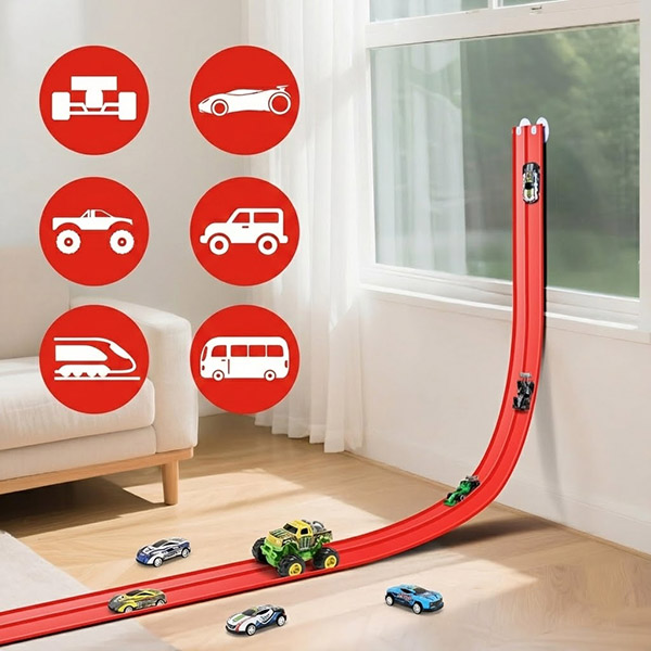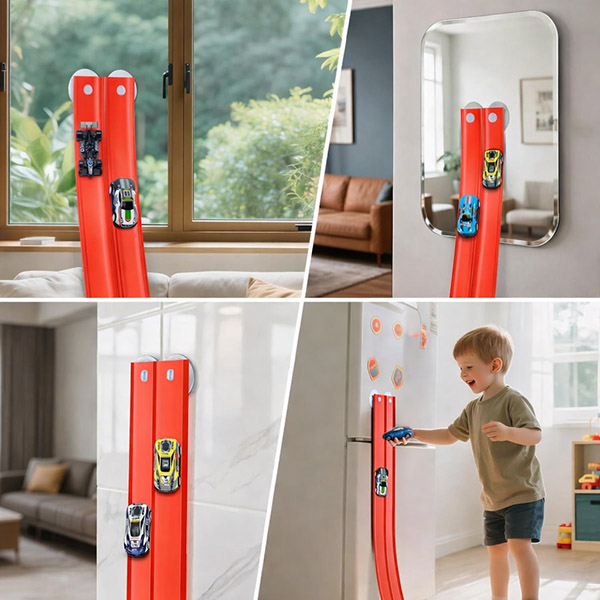 La fijación con ventosas permite que niños y padres ajusten rápidamente los ángulos y las configuraciones, de modo que la pista se pueda reconstruir una y otra vez sin herramientas ni configuraciones complejas.