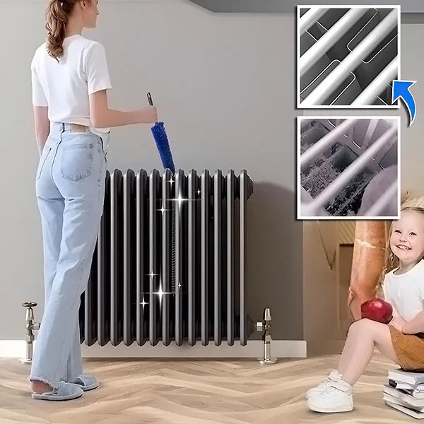 No es necesario desmontar las rejillas de tu radiador. DUSTOFF está hecho a medida para la limpieza de radiadores. Su carga electrostática atrae el polvo y la suciedad, por lo que es ideal para radiadores tipo panel, columna, lobulados, tipo escalera y toalleros.