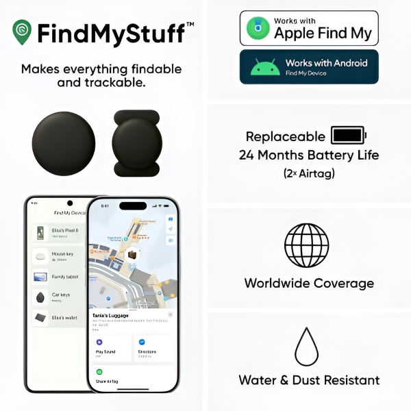 📱 Compatibilidad con la función «Buscar» de Apple y Android